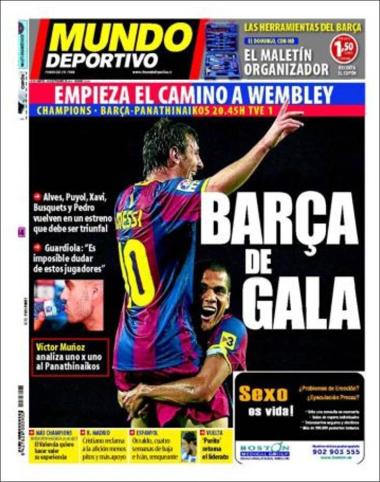 Il quotidiano catalano Sport parla del debutto in Champions League del Barcellona che sarà impegnato nella trasferta greca contro il Panathinaikos. Guardiola vuole una reazione d’orgoglio dopo il due a zero subito in campionato dall’Hercules.