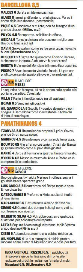 VIDEO BARCELLONA-PANATHINAIKOS – Super Lionel Messi travolte il Panathinaikos. Il Barcellona passeggia cinque a uno contro i greci nel debutto di Champions League al Camp Nou. I blaugrana passano in svantaggio a causa del gol di Govou ma l’argentino è imprendibile e sigla una doppietta. Di Villa, Pedro e Dani Alves le altre marcature. Video e pagelle della Gazzetta dello Sport.