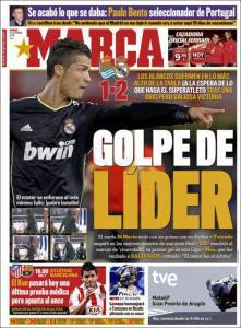 Marca: il colpo del Real Madrid 19/09/2010 di admin Su Marca viene messa in evidenza la buona prestazione del Real Madrid di Josè Mourinho, che ha vinto per 2 a 1 la partita contro il R. Sociedad con le reti di Cristiano Ronaldo e di Di Maria. Francesco Cini – www.calciomercatonews.com