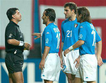 CALCIO ESTERO – Mondiali 2002, Corea del Sud-Italia, la formazione azzurra guidata da Trapattoni esce agli ottavi di finale a causa del golden gol di Ahn. Ad arbitrare quel match fu un arbitro ecuadoriano Byron Moreno, che espulse Totti e annullò un gol valido di Tommasi.