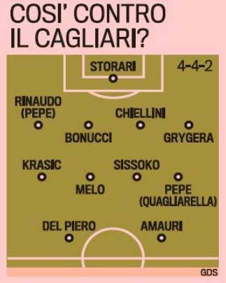 FANTACALCIO JUVENTUS – In vista del match di domenica sera contro il Cagliari, il tecnico della Juventus Delneri potrebbe schierare dal primo minuto Rinaudo nel ruolo di terzino destro. L’alternativa sarebbe quella di mettere Pepe in difesa con Quagliarella che giocherebbe come ala sinistra. Ecco la probabile formazione secondo la Gazzetta dello Sport.