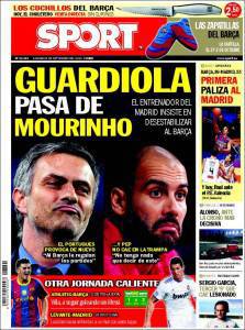Anche il quotidiano catalano Sport ha parlato della diatriba dialettale tra Mourinho e Guardiola. In verità lo Special One ha nuovamente provocato dichiarando che molte società spagnole favoriscono la vittoria del Barcellona. Dall’altra parte il tecnico dei catalani non ha voluto rispondere al collega.
