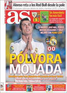 As: Polvora mojada 26/09/2010 di admin Su As il deludente pareggio del Real Madrid di Josè Mourinho che non va oltre lo 0 a0. Squadra che non riesce a convincere e che sente sempre il fiato sul collo del Barcellona di Guardiola. Francesco Cini – www.calciomercatonews.com
