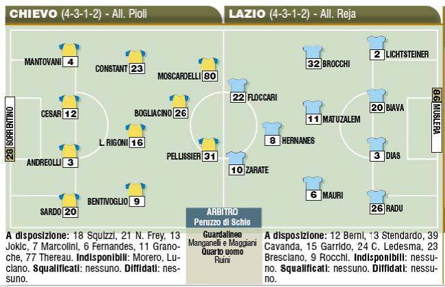 SERIE A – Per quanto riguarda la formazione veneta, confermati gli 11 titolari che hanno espugnato il San Paolo. Zarate in dubbio, dopo la bocciatura contro il Milan sembrerebbe che Reja lo voglia schierare a partita iniziata. Chievo e Lazio in campo entrambe con il modulo 4-3-1-2.