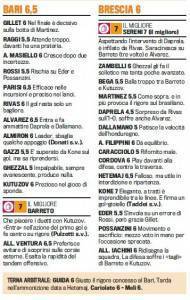FANTACALCIO BARI-BRESCIA – Il Bari di Ventura torna a vincere dopo il pesante quattro a zero rimediato a Milano mercoledì sera. La formazione pugliese vince due a uno contro il Brescia grazie al gol decisivo di Barreto su rigore. Ecco i voti della Gazzetta dello Sport, il migliore è il portiere del Brescia Sereni.
