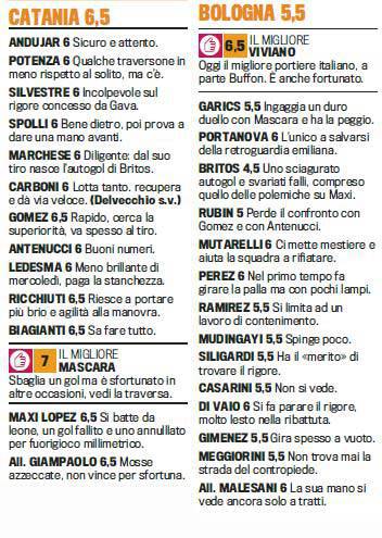 FANTACALCIO CATANIA-BOLOGNA – Pareggiano uno a uno Catania e Bologna nel match del Massimino. Gli etnei rimontano il gol di Di Vaio, lesto a ribattere il rigore parato da Andujar, grazie all’autorete di Britos, forse il peggiore in campo. Bene il portiere Viviano nei felsinei e Mascara negli etnei.