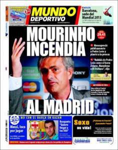 Mundo Deportivo: Mourinho incendia Madrid 28/09/2010 di admin MUNDO DEPORTIVO – Consueta conferenza stampa agitata quella di Josè Mourinho. Anche in Spagna stanno iniziando a conoscere il suo metodo di lavoro. Daniele Berrone – www.calciomercatonews.com