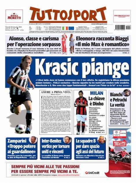 TUTTOSPORT – Krasic, nuovo idolo dei tifosi bianconeri, si è commosso per l’accoglienza e il calore che gli riservano i tifosi. Il serbo è diventato ufficialmente il nuovo eroe bianconero.