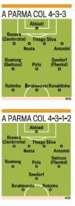 FANTACALCIO MILAN ALLEGRI MODULO – In casa Milan il tecnico Allegri non ha ancora deciso quale modulo adottare in vista dell’insidiosa trasferta di Parma. In “ballottaggio” il classico 4-3-3 con Ronaldinho e Robinho nel tridente d’attacco con Ibrahimovic, oppure il 4-3-1-2 con Seedorf alle spalle di Ibrahimovic e Robinho. Ecco i due moduli secondo la Gazzetta dello Sport.