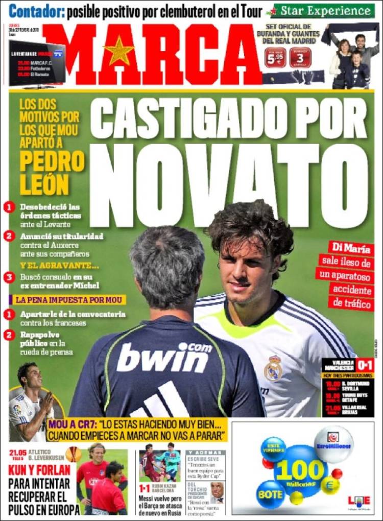 Sul quotidiano spagnolo Marca si parla dell’esclusione di Pedro Leon da parte di Josè Mourinho tecnico del Real Madrid. Il giovane talento spagnolo è stato messo fuori dalla lista dei convocati per alcuni comportamenti che non sono piaciuti allo Special One.