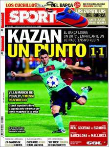 Il quotidiano catalano Sport parla dell’uno a uno del Barcellona sul campo del Rubin Kazan. I russi si confermano avversario difficile per i catalani. Già lo scorso anno il Rubin vinse al Camp Nou e pareggiò in casa strappando ben 4 punti ai blaugrana.