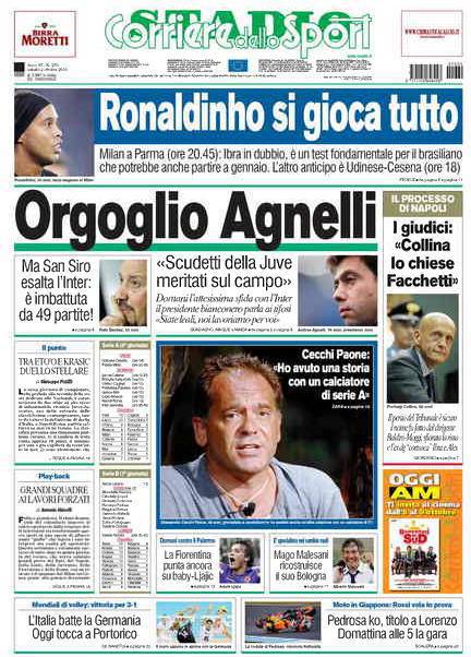 Il Corriere dello Sport mette in primo piano la lettera scritta dal presidente della Juventus Andrea Agnelli ai tifosi bianconeri ribadendo che la società bianconera ha sempre vinto sul campo e in maniera corretta tutti i suoi trofei.