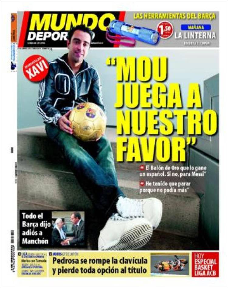Sul quotidiano catalano El Mundo Deportivo intervista esclusiva al giocatore del Barcellona Xavi che ha parlato delle polemiche di Josè Mourinho. Secondo il giocatore spagnolo, Campione del Mondo nel 2010, il tecnico portoghese carica ancora di più i calciatori del Barcellona.