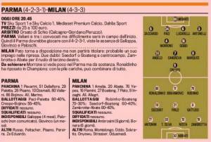 FANTACALCIO FORMAZIONI PARMA MILAN – Questa sera il Milan affronterà in trasferta il Parma nell’anticipo serale della sesta giornata di campionato. Il tecnico rossonero Allegri rilancia Ronaldinho nel tridente d’attacco con Ibrahimovic e Robinho, mentre nel Parma Marino punterà sull’ex Crespo. Ecco le formazioni secondo la Gazzetta dello Sport.