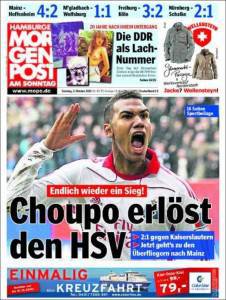 MORGEN POST RASSEGNA STAMPA ESTERA – Ieri si sono giocate alcune partite di Bundesliga ed il Morgen Post, quotidiano tedesco vicino all’Amburgo ha elogiato in prima pagina la squadra del Nord Germania. Infatti l’HSV, così chiamata in teutonia, nelle ultime 4 partite aveva pareggiato 2 volte e perso 2 volte e ieri alla quinta partita è riuscita a vincere contro il Kaiserslautern in casa per 2 a 1.