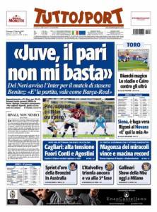 TUTTOSPORT RASSEGNA STAMPA – Ieri come in ogni partita di campionato e coppa, c’è stata la conferenza stampa della vigilia prepartita ed il tecnico Gigi Del Neri è stato intervistato dai giornalista. L’allenatore bianconero ha voluto suonare la carica a tutto l’ambiente che nell’ultimo periodo sembra molto triste a causa dei risultati non molto coninvincenti dichiarando che: “Il pari non mi basta voglio vincere”.