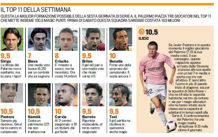 FANTACALCIO SERIE A – La sesta giornata è ormai passata agli archivi. Per gli amanti del Fantacalcio la Gazzetta dello Sport ha proposto la top 11 dei giocatori che hanno animato in positivo la giornata di campionato. Ecco la formazione comandata dal giocatore del Palermo Ilicic.