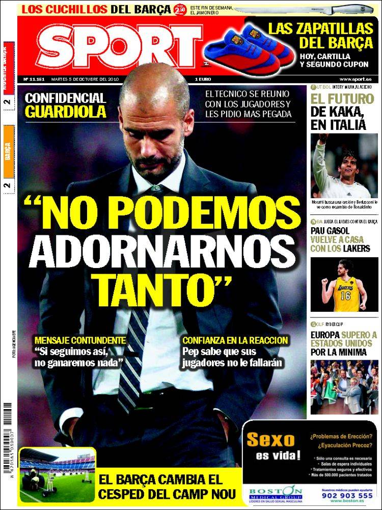 GUARDIOLA BARCELLONA – Anche sul quotidiano catalano Sport si parla delle dichiarazioni di Guardiola, tecnico del Barcellona, che ha rimproverato i suoi ragazzi per alcune disattenzioni di troppo che hanno portato al pareggio casalingo contro il Mallorca.