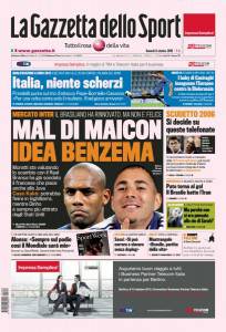 INTER RASSEGNA STAMPA GAZZETTA – Sulla Gazzetta dello Sport si parla del calciomercato Inter con Moratti che sta pensando a uno scambio con il Real Madrid. In Spagna potrebbe finire un triste Maicon, mentre in nerazzurro potrebbe approdare Karim Benzema, centravanti francese.