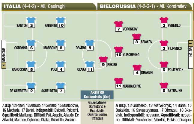 NAZIONALE UNDER 21 – Casiraghi, per la partita contro i Bielorussi, sembra orientato a puntare sul duo d’attacco Destro-Okaka, con Macheda ancora in panchina.