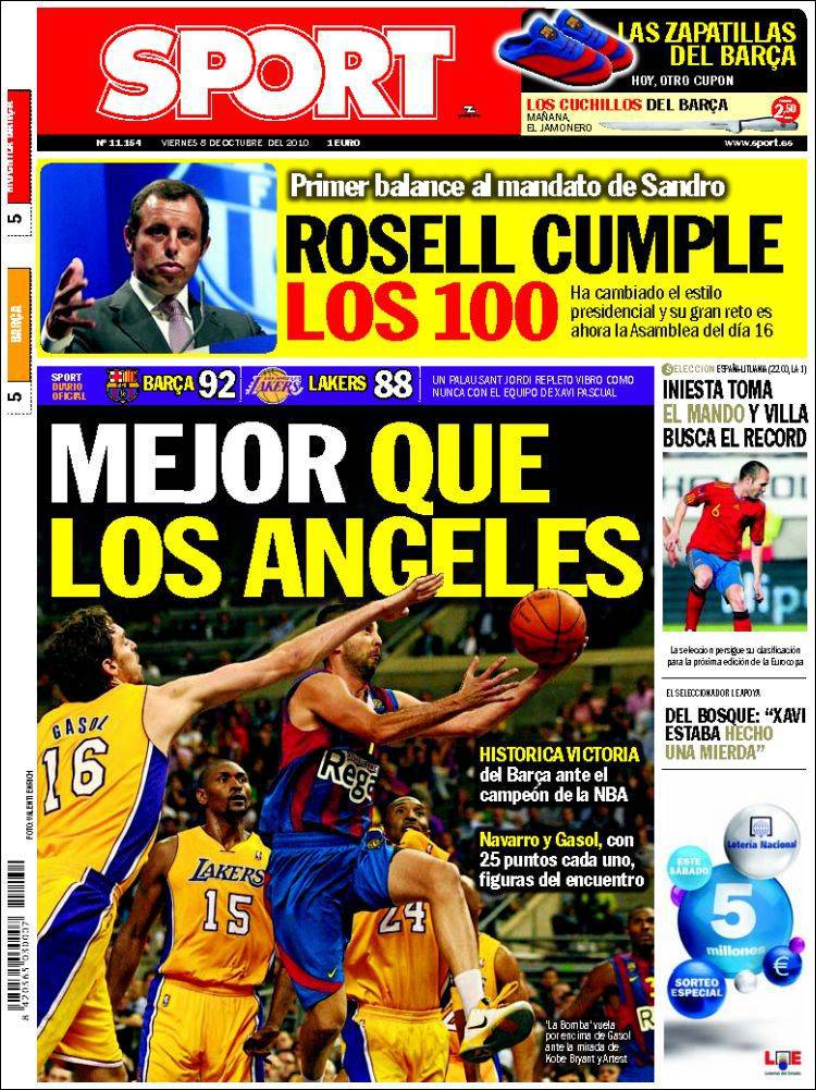 Sul quotidiano catalano Sport si parla del nuovo presidente del Barcellona Sandro Rosell che ha compiuto i primi 100 giorni da presidente del club catalano. Durante la campagna acquisti sono arrivati giocatori del calibro di Mascherano e Villa.