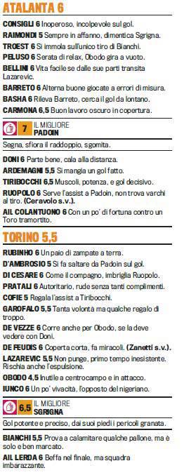 SERIE B ATALANTA TORINO PAGELLE – Nel posticipo serale dell’ottava giornata di Serie B, l’Atalanta batte il Torino per due a uno grazie ai gol di Padoin, il migliore in campo secondo la Gazzetta dello Sport, e Tiribocchi, intervallato dal momentaneo pareggio di Tiribocchi. Ecco le pagelle.
