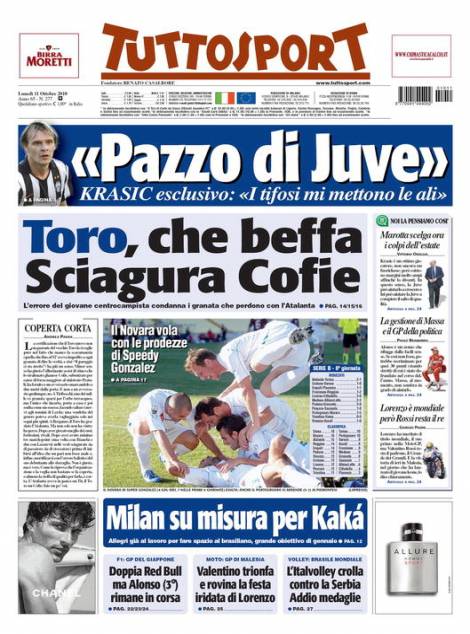 JUVENTUS KRASIC – Sul quotidiano torinese Tuttosport intervista esclusiva all’ala serba della Juventus Milos Krasic che ha rivelato di essere innamorato calcisticamente parlando della Juventus soprattutto grazie ai tifosi bianconeri.