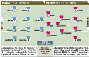 EUROPEI 2012 ITALIA SERBIA FORMAZIONI – Questa sera al Marassi di Genova l’Italia di Prandelli affronterà la Serbia di Stankovic e Krasic nel match di qualificazione ai prossimi Europei del 2012. Il c.t. azzurro punterà sulla coppia d’attacco Pazzini-Cassano, compagni di squadra nella Sampdoria. Ecco le probabili formazioni secondo la Gazzetta dello Sport.