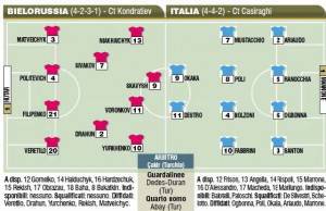 UNDER 21 BIELORUSSIA ITALIA FORMAZIONI – L’Italia Under 21 di Casiraghi cerca il pass per approdare alla fase finale dell’Europeo. In Bielorussia gli azzurri dovranno difendere il due a zero conquistato all’andata. Casiraghi si affiderà a Destro in attacco con Ranocchia e Santon in difesa. Ecco le formazioni secondo il Corriere dello Sport.