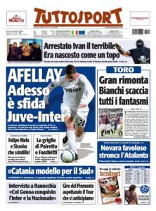 TUTTOSPORT AFELLAY RASSEGNA – Anche il quotidiano Tuttosport parla di calciomercato spostandosi a Torino dove la Juventus sfiderà l’Inter per l’acquisto di Ibrahim Afellay, esterno d’attacco della Nazionale olandese e del Psv.
