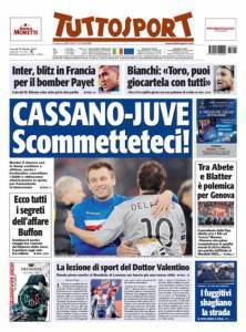 CALCIOMERCATO JUVENTUS RASSEGNA – Sul quotidiano torinese Tuttosport si parla del calciomercato Juventus e in particolare dell’interessamento dei bianconeri per Antonio Cassano. Un affare che secondo i bookmakers si farà a giugno.