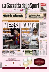 GAZZETTA RASSEGNA INTER MILAN – Sulla Gazzetta dello Sport si parla del calciomercato di Inter e Milan che hanno nel mirino due campionissimi come Messi e Kakà. Moratti sogna l’arrivo del fuoriclasse del Barcellona mentre Galliani vorrebbe riportare a Milanello il brasiliano del Real Madrid.