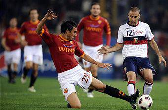SERIE A ROMA GENOA – Si è chiuso sul risultato di 1-0 il primo tempo di Roma-Genoa valida per la settima giornata di Serie A. Bella partita all’Olimpico con i giallorossi che hanno sfiorato il vantaggio in più di un’occasione, in particolare con l’ex Marco Borriello che ha colpito un palo dopo aver saltato anche il portiere Eduardo. Precedentemente proprio la Roma aveva reclamato per un possibile calcio di rigore per un fallo proprio su Borriello. Il Genoa ha risposto con una grande occasione capitata sulla testa dell’altro ex Luca Toni che ha messo fuori. Al 35′ è l’ex attaccante del Milan a portare in vantaggio gli uomini di Ranieri con un tocco su assit di Totti.
