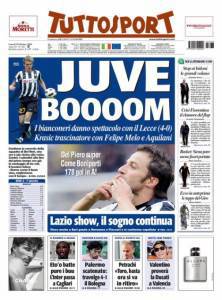 TUTTOSPORT JUVENTUS DEL PIERO – Sul quotidiano torinese Tuttosport si parla del quattro a zero della Juventus rifilato al Lecce. I gol sono arrivati per mano di Aquilani, Felipe Melo su rigore, Quagliarella e Del Piero che ha così raggiunto il record di Boniperti di 178 gol in Serie A.