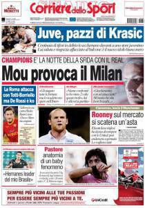 Sul Corriere dello Sport si parla delle provocazione di Josè Mourinho, tecnico del Real Madrid, che ieri durante la conferenza stampa ha provocato il tecnico del Milan Allegri parlando degli attaccanti rossoneri temendo in particolare Inzaghi.