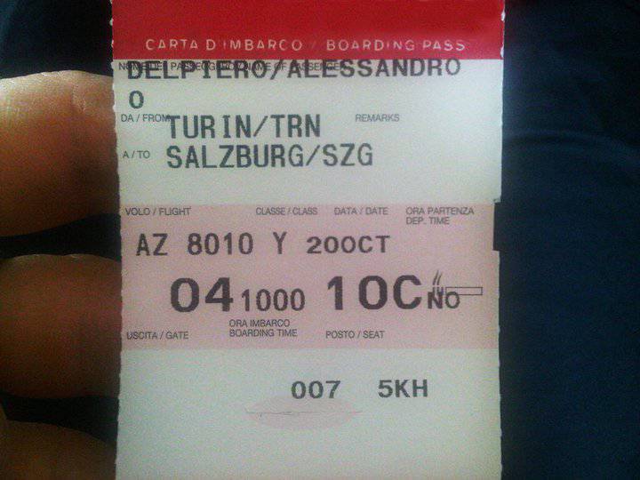 DEL PIERO SALISBURGO JUVENTUS EUROPA LEAGUE BIGLIETTO – Il capitano della Juventus Alessandro Del Piero, che domenica contro il Lecce ha festeggiato il 178esimo gol in Serie A con la maglia bianconera raggiungendo Boniperti, ha mostrato sul proprio profilo Facebook, il biglietto aereo che porterà la squadra in Austria per la sfida di domani sera contro il Salisburgo valido per la terza giornata di Europa League. Ecco la foto.