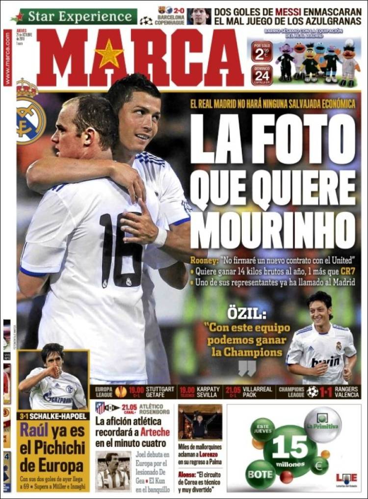 RASSEGNA MARCA ROONEY – Sul quotidiano spagnolo Marca si parla del calciomercato del Real Madrid con il tecnico Josè Mourinho che sogna l’arrivo di Rooney nel mercato di gennaio. Il giocatore inglese ieri ha confermato il suo addio dal Manchester United e su di lui c’è mezza Europa.