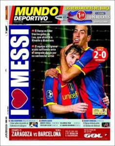 RASSEGNA MESSI MUNDO DEPORTIVO – Sul quotidiano catalano Mundo Deportivo pioggia di elogi per Lionel Messi, stella argentina del Barcellona, sempre più capocannoniere della formazione di Pep Guardiola. Ieri contro il Copenhagen doppietta decisiva per il due a zero finale. La Pulce è già tornata in forma dopo il brutto infortunio di qualche settimana fa.