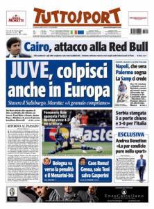RASSEGNA TUTTOSPORT – Sul quotidiano Tuttosport si parla dell’impegno di questa sera della Juventus in Europa League contro gli austriaci del Salisburgo. Intanto sul fronte mercato il dirigente bianconero Beppe Marotta ha annunciato nuovi colpi e tra gli obiettivi c’è anche Bale del Tottenham.