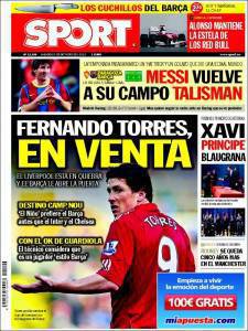 RASSEGNA TORRES CALCIOMERCATO – Sul quotidiano catalano Sport si parla del calciomercato del Barcellona con l’interessamento dei blaugrana per Fernando Torres, centravanti spagnolo del Liverpool che a fine stagione lascerà il club di Anfield.
