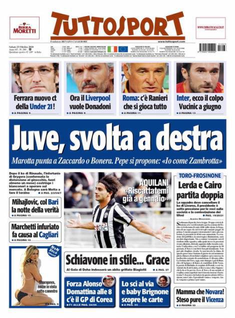 TUTTOSPORT RASSEGNA CALCIOMERCATO – Sul quotidiano torinese Tuttosport si parla del calciomercato della Juventus con l’interessamento dei bianconeri per Zaccardo e Bonera visto l’infortunio di Grygera e le pessime prestazioni di Marco Motta.