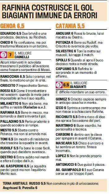 Fantacalcio Serie A, Genoa, Catania – Il Genoa vince grazie ad un gol Rossi contro il Catania e raggiunge la Sampdoria in classifica. Brillante prestazione in difesa per Dainelli. Male nel Catania Spolli e Maxi Lopez.
