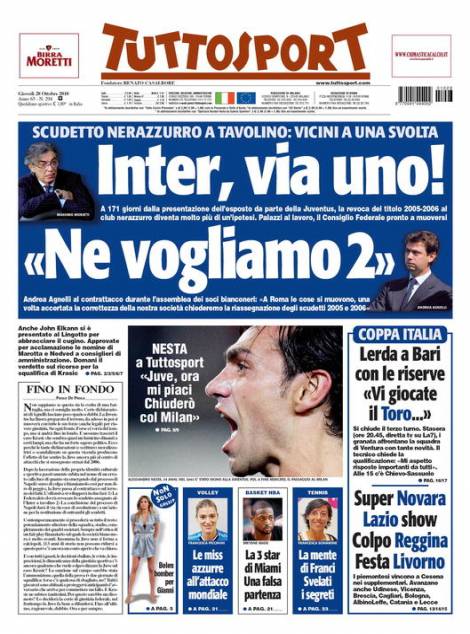 TUTTOSPORT RASSEGNA – Su Tuttosport si parla nuovamente di Calciopoli. Il quotidiano torinese sostiene che la Federcalcio è vicina a una clamorosa svolta, ovvero togliere lo Scudetto 2005/2006 all’Inter, assegnato dopo i fatti di Calciopoli, dopo le ultime intercettazioni.