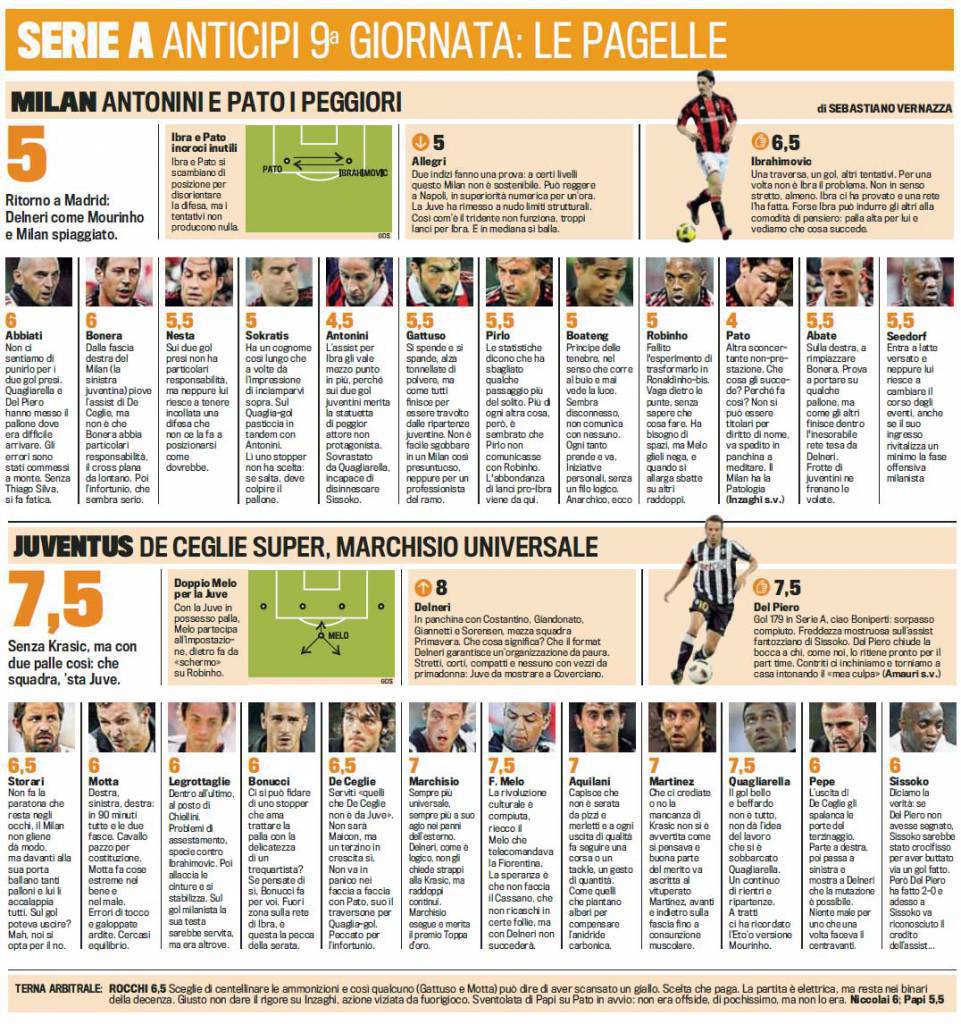 FANTACALCIO SERIE A MILAN JUVENTUS VOTI – La Gazzetta dello Sport ha realizzato delle belle pagelle molto curate sulla partita di ieri sera tra Milan e Juventus che ha visto i bianconeri imporsi per 2 a 1 con i gol di Quagliarella e Del Piero, inutile il gol rossonero di Ibrahimovic. Proprio il capitano bianconero è stato eletto il migliore della Juventus, ecco a voi le pagelle.