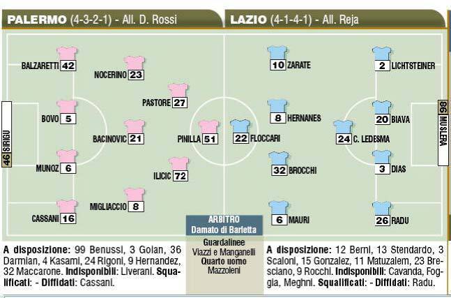 SERIE A PALERMO LAZIO PROBABILI FORMAZIONI – Tra poco meno di un’ora e mezza, si giocherà allo stadio Barbera Palermo-Lazio, due squadre che stanno giocando molto bene ultimamente specialmente i biancocelesti che occupano le zone alte della classifica. Oggi però a sfidarli ci saranno i rosanero in casa, che di front al loro pubblico non vorranno fallire, sarà una bella partita: ecco le formazioni probabili prese dal Corriere dello Sport.