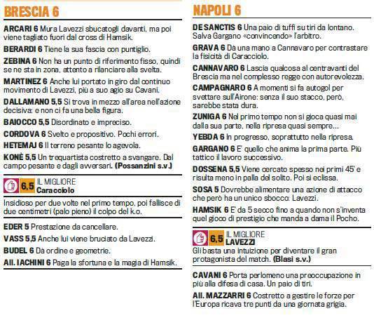 GAZZETTA BRESCIA NAPOLI PAGELLE FANTACALCIO – In Brescia-Napoli un lampo della ditta Hamsik-Lavezzi permette ai partenopei di vincere il match. Fino a quel momento si era visto un buon Brescia con Caracciolo migliore dei suoi. Nel Napoli Lavezzi migliore in campo. Ecco le pagelle della Gazzetta dello Sport.