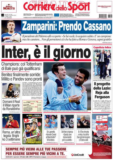 CORRIERE RASSEGNA INTER – Anche il Corriere dello Sport parla di Tottenham-Inter in programma questa sera. I nerazzurri in caso di vittoria volerebbero direttamente agli ottavi di finale, ma anche un pareggio potrebbe bastare alla truppa di Rafa Benitez.