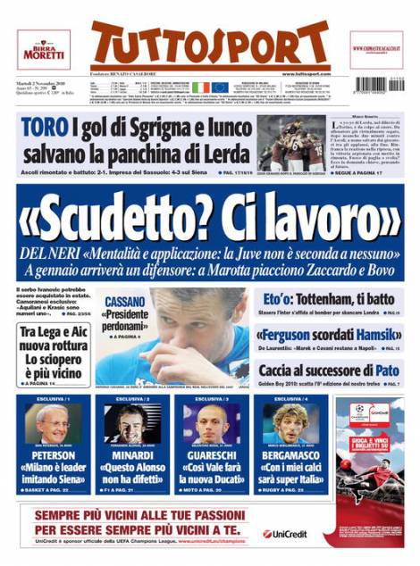 TUTTOSPORT RASSEGNA – Il quotidiano torinese Tuttosport riporta la dichiarazioni del tecnico della Juventus Gigi Delneri che ha parlato ai giornalisti del sogno Scudetto dichiarando che i bianconeri possono lottare per la vittoria finale.
