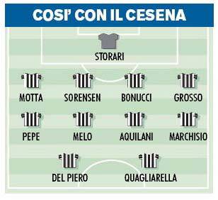 Serie A Juventus Cesena probabili formazioni – Gli infortuni tornano a flagellare la rosa bianconera. Dopo i fastidi che hanno colpito Giorgio Chiellini, si è fermato anche Nicola Legrottaglie e l’allenatore della Juventus, Gigi Delneri, potrebbe essere costretto a lanciare dal primo minuto il giovane difensore danese Frederic Sorensen. Ecco la probabile formazione della squadra bianconera, secondo il ‘Corriere dello Sport’.