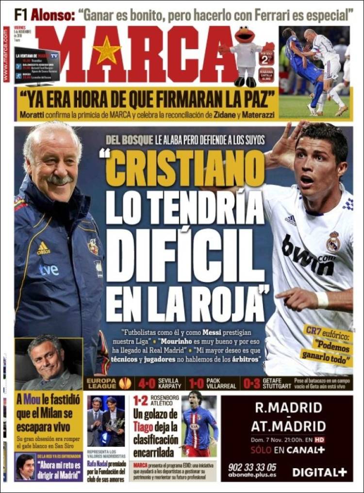 RASSEGNA MARCA MORATTI – Il presidente dell’Inter Moratti ha confermato l’anticipazione del quotidiano spagnolo Marca circa la pace tra Materazzi e Zidane quattro anni dopo la testa del francese all’italiano nella finale Mondiale. Un abbraccio avvenuto nell’hotel che ospitava il Real Madrid.